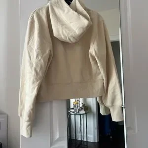 NWOT never worn I just decided the color wasn’t for me. It’s more of a pale yellow and super soft. It’s a bit cropped and pretty roomy on the arms.