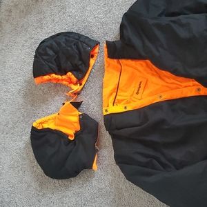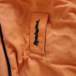 I have this Remington, XL, Used Black and Orange reversible coat. The coat has decent weight to it. Theres no visible wear and tear on the black or orange, cant even tell it has even been worn. It also comes with two different removable hood options to help you keep warm while out on adventures in the wild, or any other occasion.