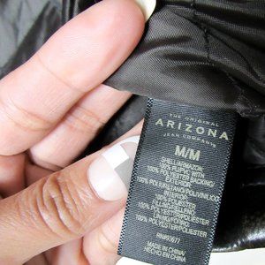 Arizona Jean Company Faux Leather Moto Jacket Vintage 90s Motorcycle Biker- Black w/ Two-Tone Stripes