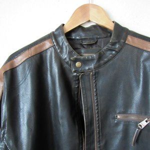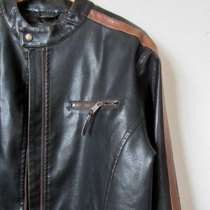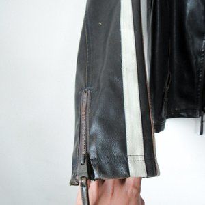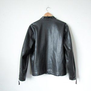 VINTAGE 90s Faux Leather Moto Jacket Sporty Stripes Size Men's M or Womens M/L