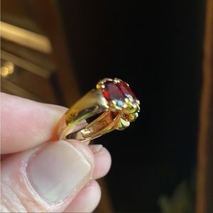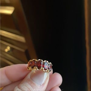 14k gold garnet ring over sterling silver. Stamped beautiful! Size 6