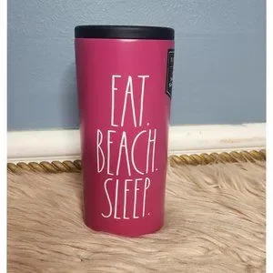 RAE DUNN "EAT BEACH SLEEP" INSULATED STAINLESS STEEL SLIM-CAN COOLER