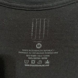 Spencers Four Eyes Nun Adult Medium Black Crewneck T-Shirt. Measurements in photos is from armpit to armpit and top to bottom of shirt.. shirt has been laundered but always suggest washing any pre owned garments.. please look at all photos and feel free to contact me with any questions..