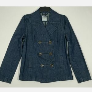 DOUBLE BREASTED DENIM PEA COAT JACKET SIZE XL