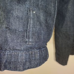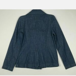 REPOSH.. PURCHASED ABOUT 3 YEARS AGO AND WORE MAYBE 2X. EXCELLENT CONDITION. THIS IS NOT A SUPER DARK WASH BUT NOT A MEDIUM WASH EITHER. SOMEWHERE IN BETWEEN. DOUBLE BREASTED BROWNISH BUTTONS. SLIT PICKET AT EACH SIDE. IF YOU HAVE ANY QUESTIONS PLEASE ASK.