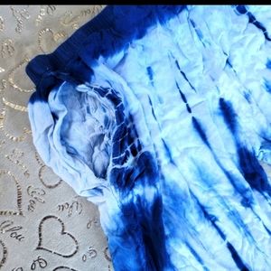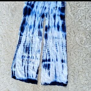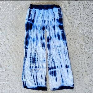 Blue Tie Dye Beach Pants Wide Leg Flowy Palazzo Beach Cover Up Shibori Indigo S