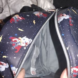 The bag has a dark blue background and has Thor chibis front and sides. This is a loungefly marvel bag and has only been used once.