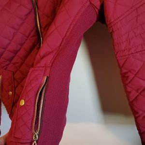 EUC Maroon quilted jacket. Slick material. Has stretchy sides. Size small. Active USA brand