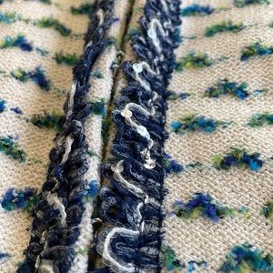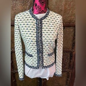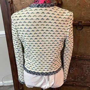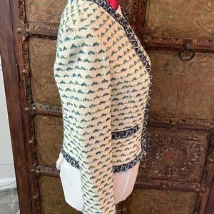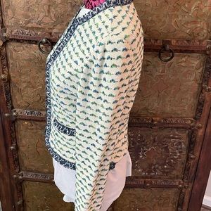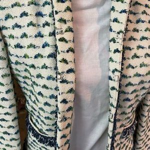 St. John jacket size 4 material wool rayon viscose polyester color white blue green. Excellent condition.