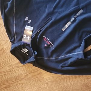 Perfect for cool weather! New with tags Under Armour men's size medium cold gear fleece sweater top, loose fit, training style. All black, lightweight fleece is super soft and comfortable with lots of stretch. Grey silver UA logo embroidered on left breast and "AthElite USA The next level" with small AE logo embroidered on right breast. 1/4 zipper. Still has the medium sticker tag and attached UA tags, all new never used.