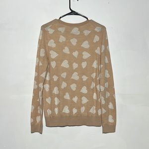 LOFT Nude Blush Pink White Hearts Ribbed Detail Crewneck Sweater Size L