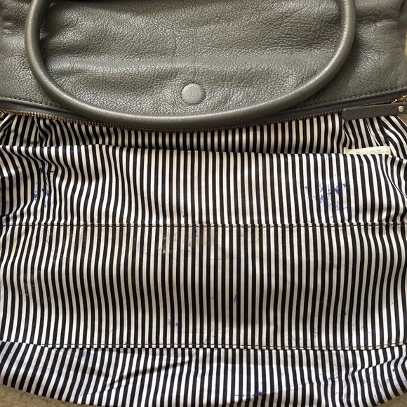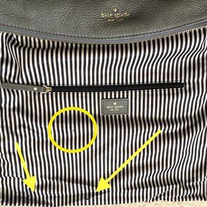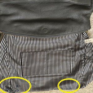 STAIN ALERT: Inside bottom and corner edges of liner have multiple blue ink stains that are noticeable if you turn the purse inside out. See pics.