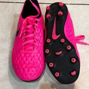 Nike neon pink youth soccer cleats used for a 1/2 of a season. They have been well cared for and stored properly away after the soccer season.