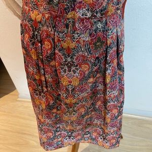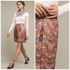 Anthropologie Rosia Brocade Red & Gold Floral Metallic Pleated Skirt