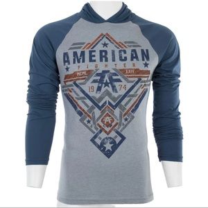 American Fighter Mens Long Sleeve Hoodie LANE shirt Premium Gray