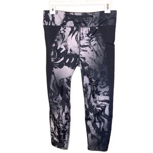 NIKE Dri-Fit Marble Print Cropped Leggings Black & Gray Size Medium