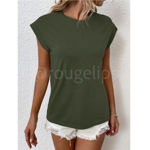 Army Green Crew Neck Muscle Tee Top Shirt Cap Sleeve, Round Neck