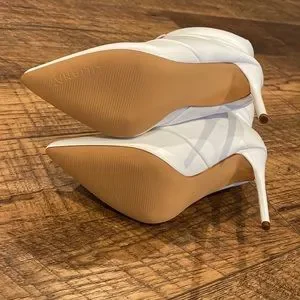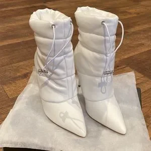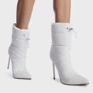PUFFER HEELED BOOT Stiletto White Pointed Toe Bootie