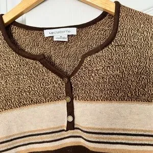 Liz Claiborne | brown stripe button sweater - M