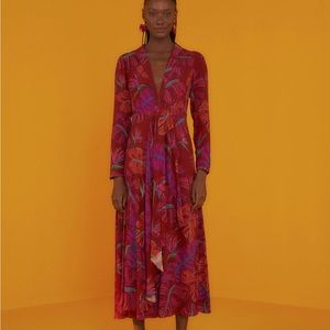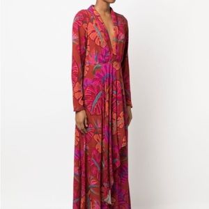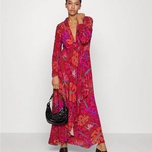 FARM Rio New Red Delicate Leaves Maxi Dress