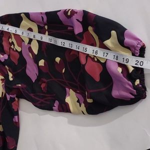 Gorgeous high quality Tucker silk boho style balloon sleeved classic floral blouse /top with gathered detail at the neckline/ smocked collar size small/ medium