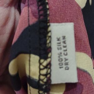 Tucker silk pink purple floral classic smocked collar blouse size s/m