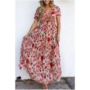 Boho Floral Print Puff Sleeve Maxi Dress