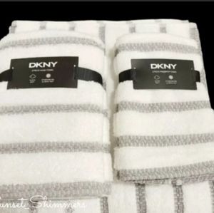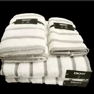 New with Tags DKNY 100% Cotton Bath Towel 6Pc Set Gray & White Striped 100% Cotton Towels.