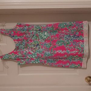 Lilly Pulitzer hot pink dress with green and blue floral print size 4 short mini dress sleeveless 32.5 in length 36 bust waist 31