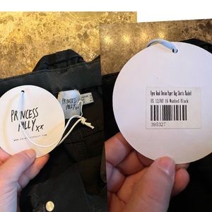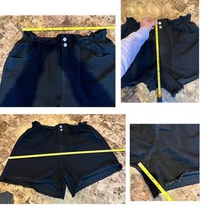 NEW Princess Polly Open Road Denim PaperBag Shorts Wash Black 12 Large Highwaist