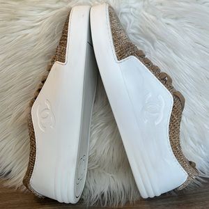 Authentic Chanel Tweed/Leather Interlocking CC Logo Sneakers