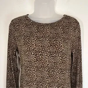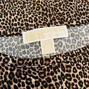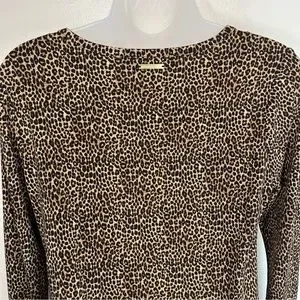 NWOT Michael Kors Drop Hem Leopard Long Sleeve Dress Pleated Stretchy Size XS