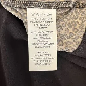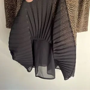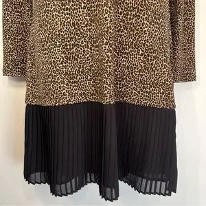 Leopard print long sleeve stretchy dress with solid black pleated drop hem. Pleated hem is double lined, dress is unlined. In like new condition, appears unworn/unwashed; no flaws or signs of wear. Crisp pleats and perfect fabric.