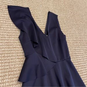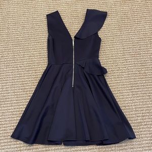 Ted Baker London Lantaa Ruffle Detail Skater Dress 1 Small S. Dark navy blue. Sleeveless. V neck. Asymmetric ruffle detailing. Skater dress. Zip fastening at back. A versatile piece to see you stylishly through every evening occasion, the LANTAA dress from Ted comes in a flattering skater style you’re sure to love. Finished with asymmetric ruffle detailing. This mini dress is sharply tailored and detailed with an unexpected ruffle at the bodice to complement the flowy skirt. Flutter trim. Exposed back zipper. Asymmetrical.