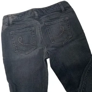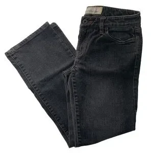 Faded black denim jeans from LOFT. Bootleg cut.