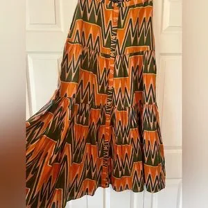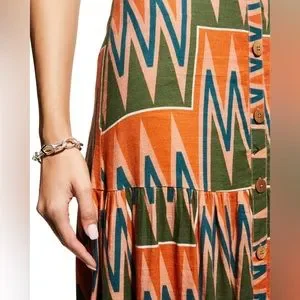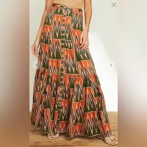 NEW! Super fun multi-colored maxi with a graphic print in washed linen. Front button closures complete the look of this must-have style. Can be dressed up or down! Really cute with wedges or booties, can transition seasons as well!! Extra button included.