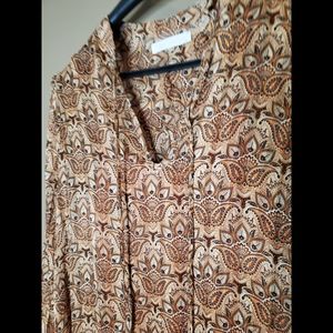 Gorgeous boho mocha tan geometric print long sleeve dress