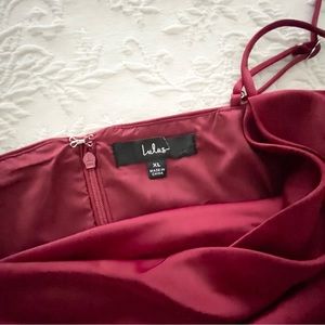 NWOT Lulus Midnight Chic Wine Red Satin Cowl Neck Mini Tulip Dress XLarge