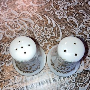LEFTON china 50th Anniversary salt & pepper shakers, 2 1/2” hi x 2”. $19