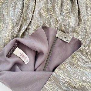 Vintage 100% Silk Skirt Sigrid Olsen Chiffon Crepe Sage Green Gray Ditsy Women's
