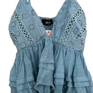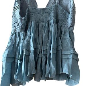 New ruffled babydoll semi cropped fit flare flowy breezy eyelet blouse top