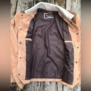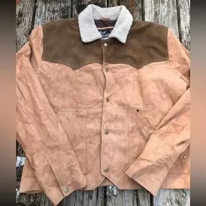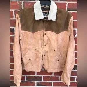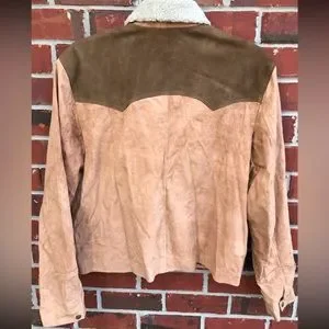 Real Leather Brand Womens Two-Tone Western Leather Jacket Coat. Size 2XL. Snap front (Snaps like male jacket) with Sherpa collar.