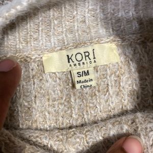 Kori America cream beige pull over knit poncho cover sweater mock neck sz S/M