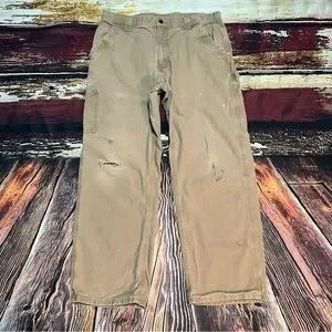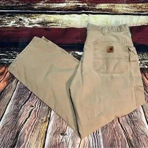 Tan Carhartt carpenter cargo workwear pants original dungaree fit size 34x29