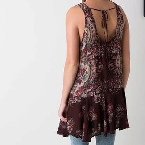 Free People Intimately Dobby Dot Slip Tunic/Mini Dress Sz. S Burgundy and Tan. In gently worn condition. Seller is the original owner; no flaws.