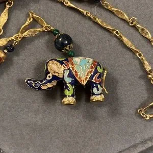 Vintage Cloisonné Elephant Necklace