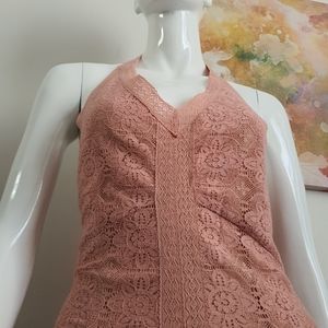 Guess Size 10 Halter Tie Back Dusty Pink Lace Maxi Dress