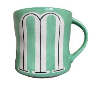Anthropologie Colorway Haindpainted Letter M Monogram Initial Mug Mint Green