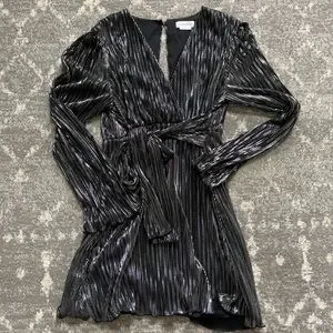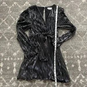 Beautiful dress! Worn once for an event and in excellent condition. Size small, true to size. Tie allows for some adjustments. Loved this dress. I do have the shoes I wore in my closet too, they match nicely 😊
