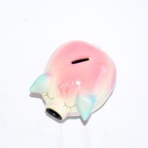 Vintage 1957 Hull Pottery Corky Pig Pink/Blue Piggy Bank